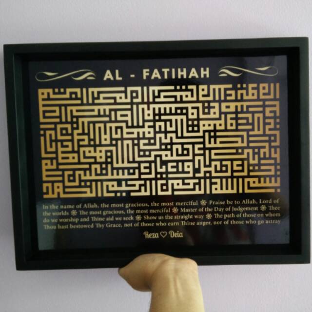 Hiasan dinding Kaligrafi kufi surat al-fatihah black gold uk